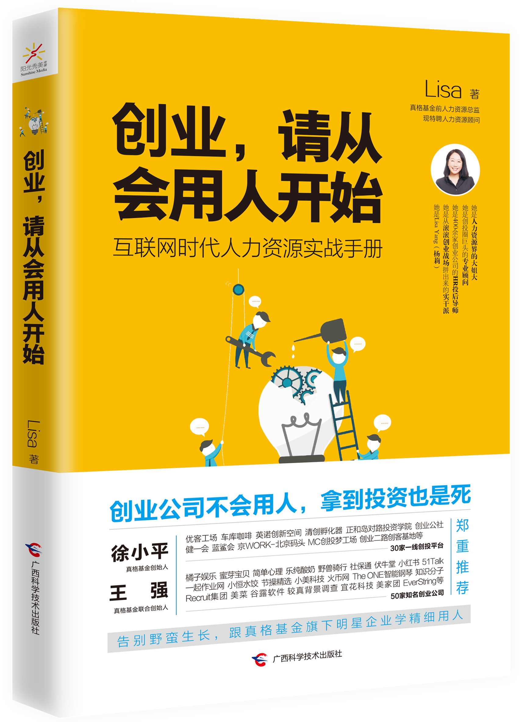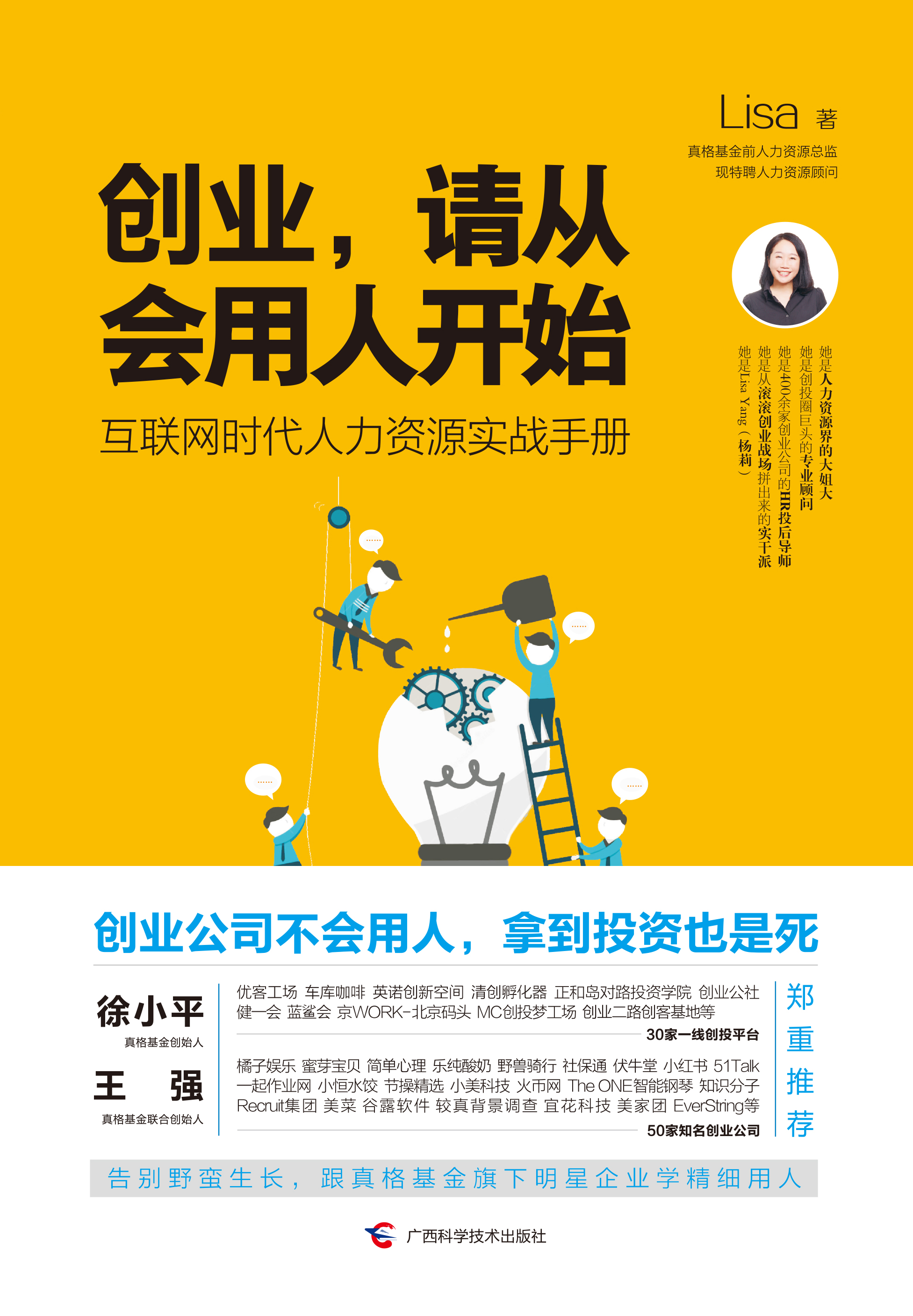 Lisa 在HR 领域属于全模块的实战派,在人才的选、育、留等方面,她对各阶段创业公司的真实需求都有着非常深刻的认识,并且能给出被实践验证过的最佳方法,相信本书会成为每位创业伙伴在处理人才问题方面的好帮手。