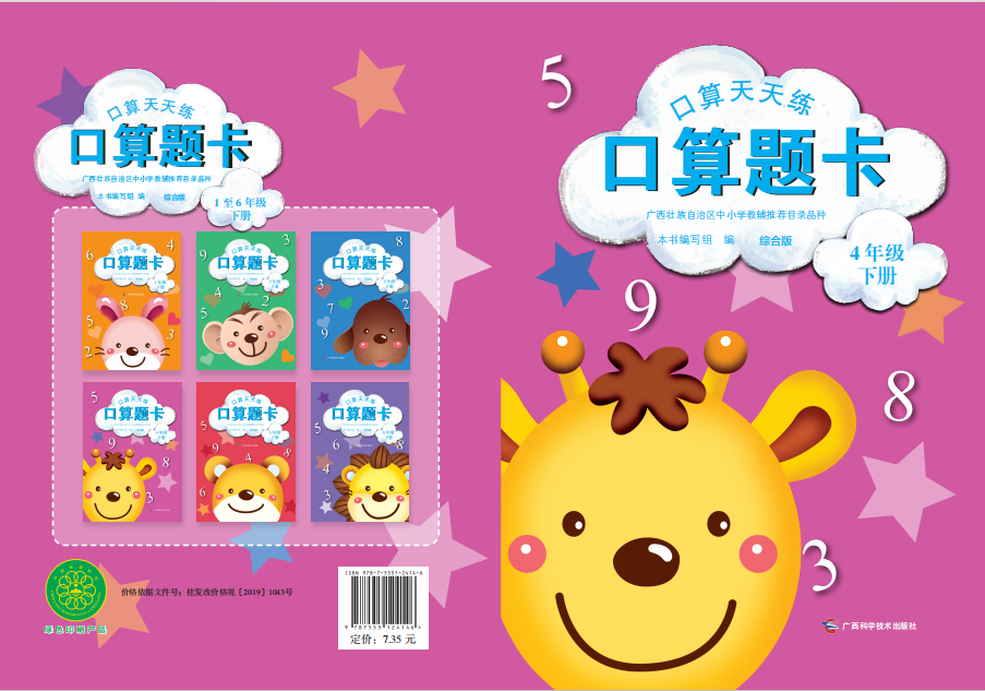 书名:口算题卡(综合版) 4年级下册