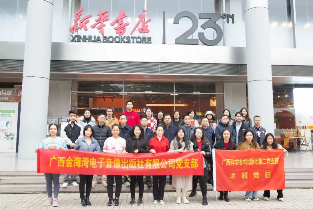 全体人员首先参观了新华书店23号店并打卡“红湾”主题阅读体验区,从红色阅读中汲取智慧和力量,提升党性修养,学习贯彻党的二十大精神。参观结束后,全体成员来到金海湾社会议室开展支部共建和业务交流活动。