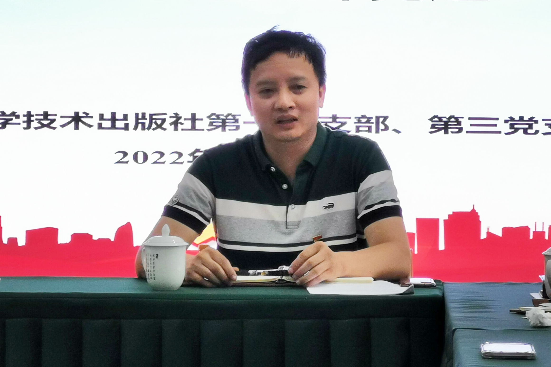 第一党支部书记、副总编辑罗煜涛以“学习党的二十大报告”为主题,为全体党员系统梳理了党的二十大报告中的重要论述,并分享了他的学习体会。他指出,党的二十大报告立意高远、思想深邃、内涵丰富,进一步指明了党和国家事业的前进方向,是我们党团结带领全国各族人民在新时代新征程坚持和发展中国特色社会主义的政治宣言和行动纲领。党员要深刻领会、贯彻落实党的二十大精神,为全面建设社会主义现代化国家、全面推进中华民族伟大复兴作出应有贡献。